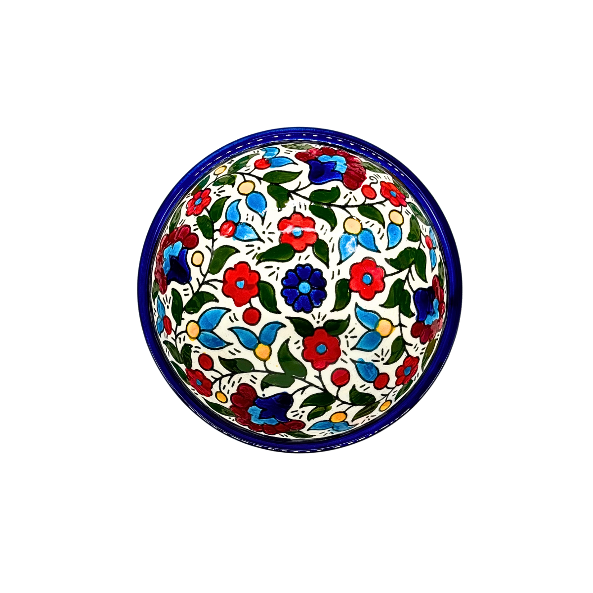 Handmade and hand-painted from the Fakhoury family in Hebron, Palestine. The Fakhoury’s come from a long line of potters and, in fact, the name Fakhoury even means “potter” in Arabic. Their shop is located in the old city of Hebron where Israeli soldiers and settlers routinely physically and verbally harass Palestinians. Despite the difficulties, the family is determined to keep their store open and their craft alive.