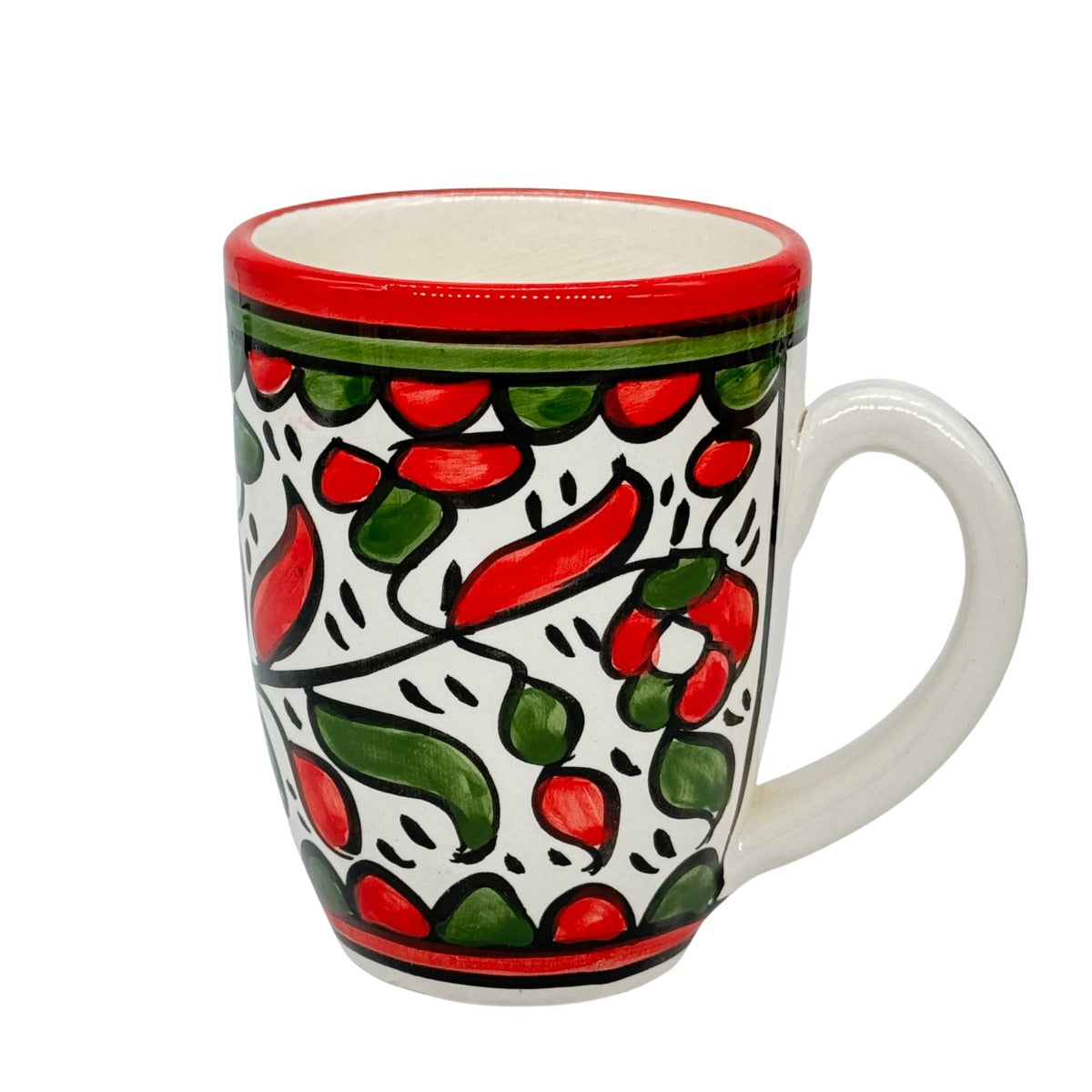 Handmade and hand-painted from the Fakhoury family in Hebron, Palestine. The Fakhoury’s come from a long line of potters and, in fact, the name Fakhoury even means “potter” in Arabic. Their shop is located in the old city of Hebron where Israeli soldiers and settlers routinely physically and verbally harass Palestinians. Despite the difficulties, the family is determined to keep their store open and their craft alive.