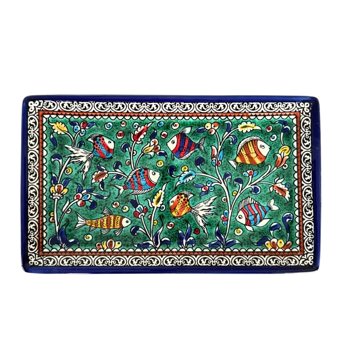 Ceramic Rectangular Platter (12.5") - Green Fish
