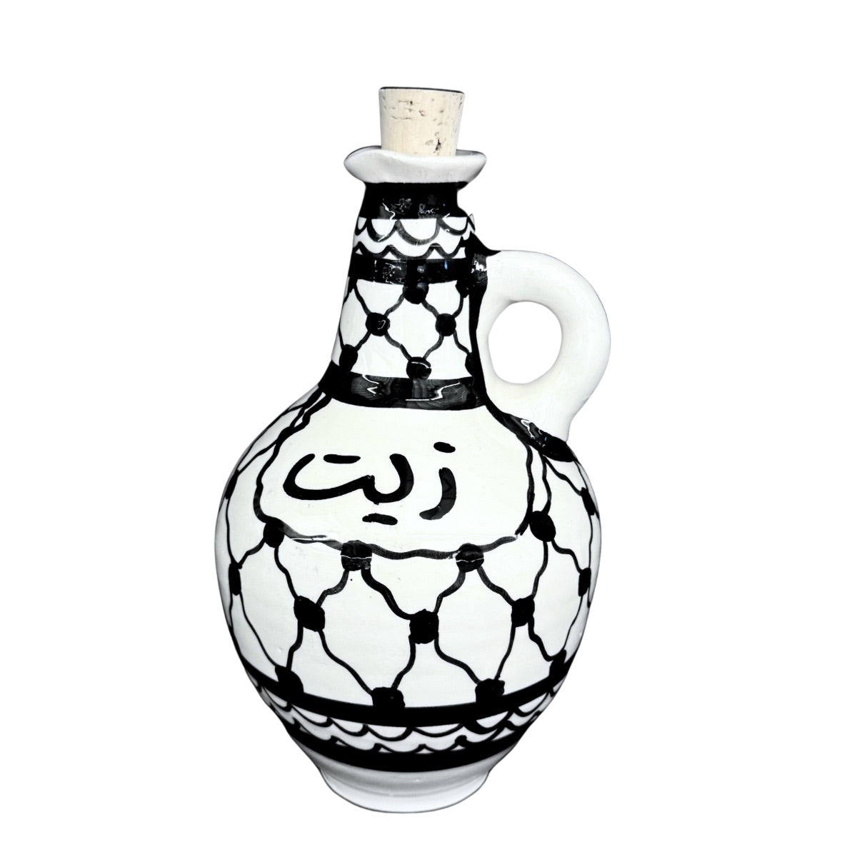 Decanter from Hebron, approximately 8" tall with the Arabic word "zeit” which means “oil.”