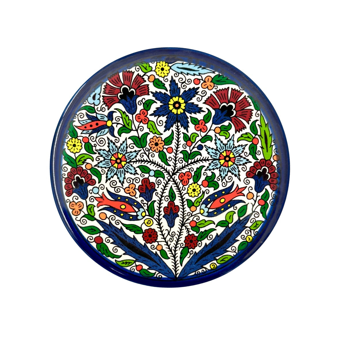 Handmade and hand-painted from the Fakhoury family in Hebron, Palestine. The Fakhoury’s come from a long line of potters and, in fact, the name Fakhoury even means “potter” in Arabic. Their shop is located in the old city of Hebron where Israeli soldiers and settlers routinely physically and verbally harass Palestinians. Despite the difficulties, the family is determined to keep their store open and their craft alive.