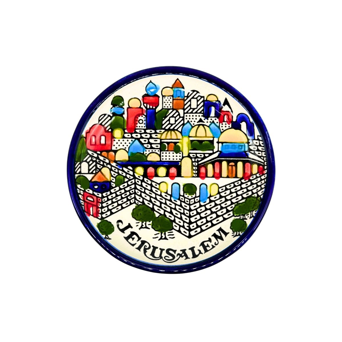 Handmade and hand-painted from the Fakhoury family in Hebron, Palestine. The Fakhoury’s come from a long line of potters and, in fact, the name Fakhoury even means “potter” in Arabic. Their shop is located in the old city of Hebron where Israeli soldiers and settlers routinely physically and verbally harass Palestinians. Despite the difficulties, the family is determined to keep their store open and their craft alive.