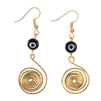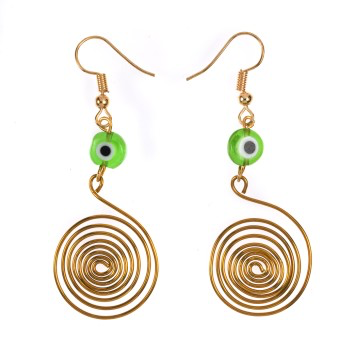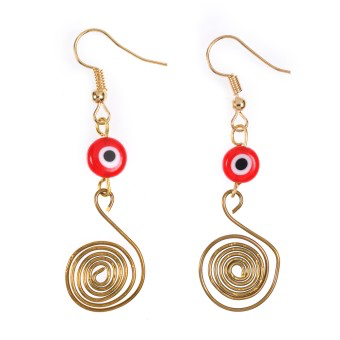 Wearing the evil eye is an ancient tradition in the region, believed to have the power to ward off negative forces like jealousy and curses. These earrings are hand-crafted with brass wire by Bedouin women artisans.