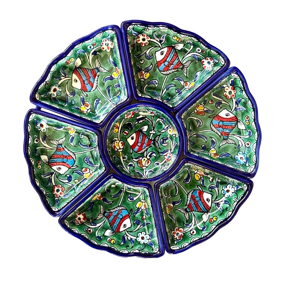 Ceramic Sectional Serving DIsh (13”) - Green Fish