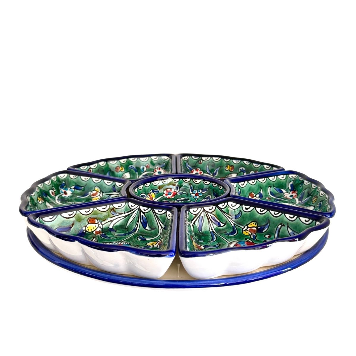 Ceramic Multi-Section Serving Dish from Hebron, Palestine. 13" X 2.5" deep.