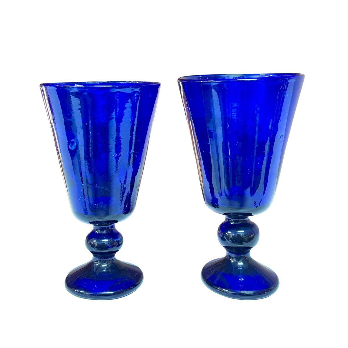 Hand-blown glassware from the artisans of Hebron Glass Studio. Each glass stands at approximately 5 inches tall.