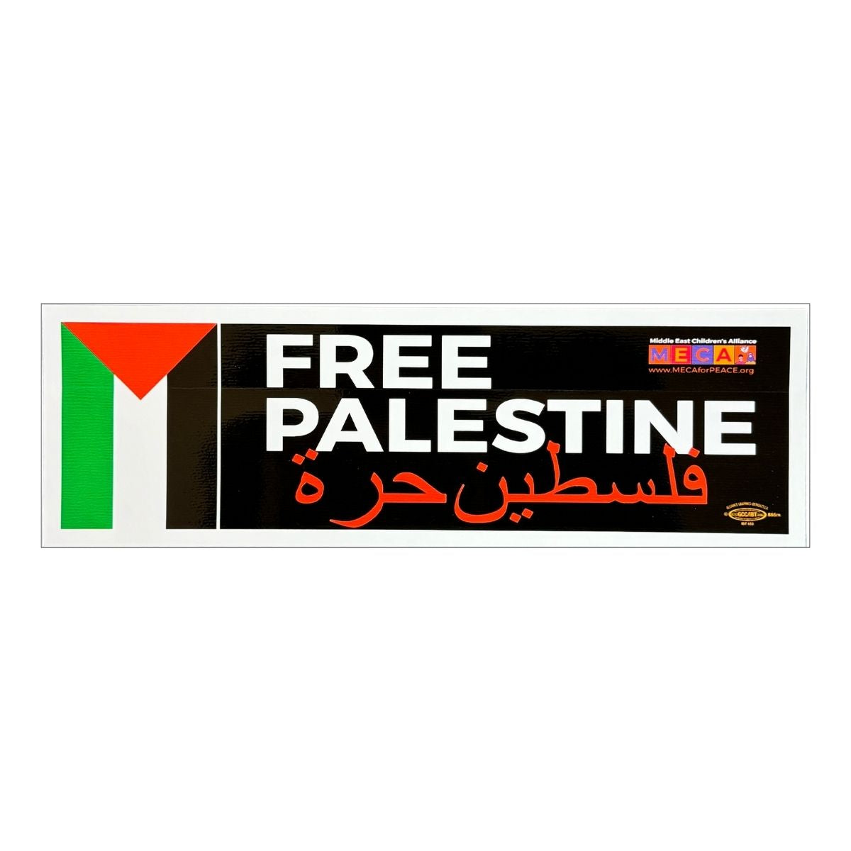 Free Palestine! bumper stickers Designed by Jos Sances, MECA's Art Director and produced by Alliance Graphics, MECA's union print shop. 3.5 x 11 inches