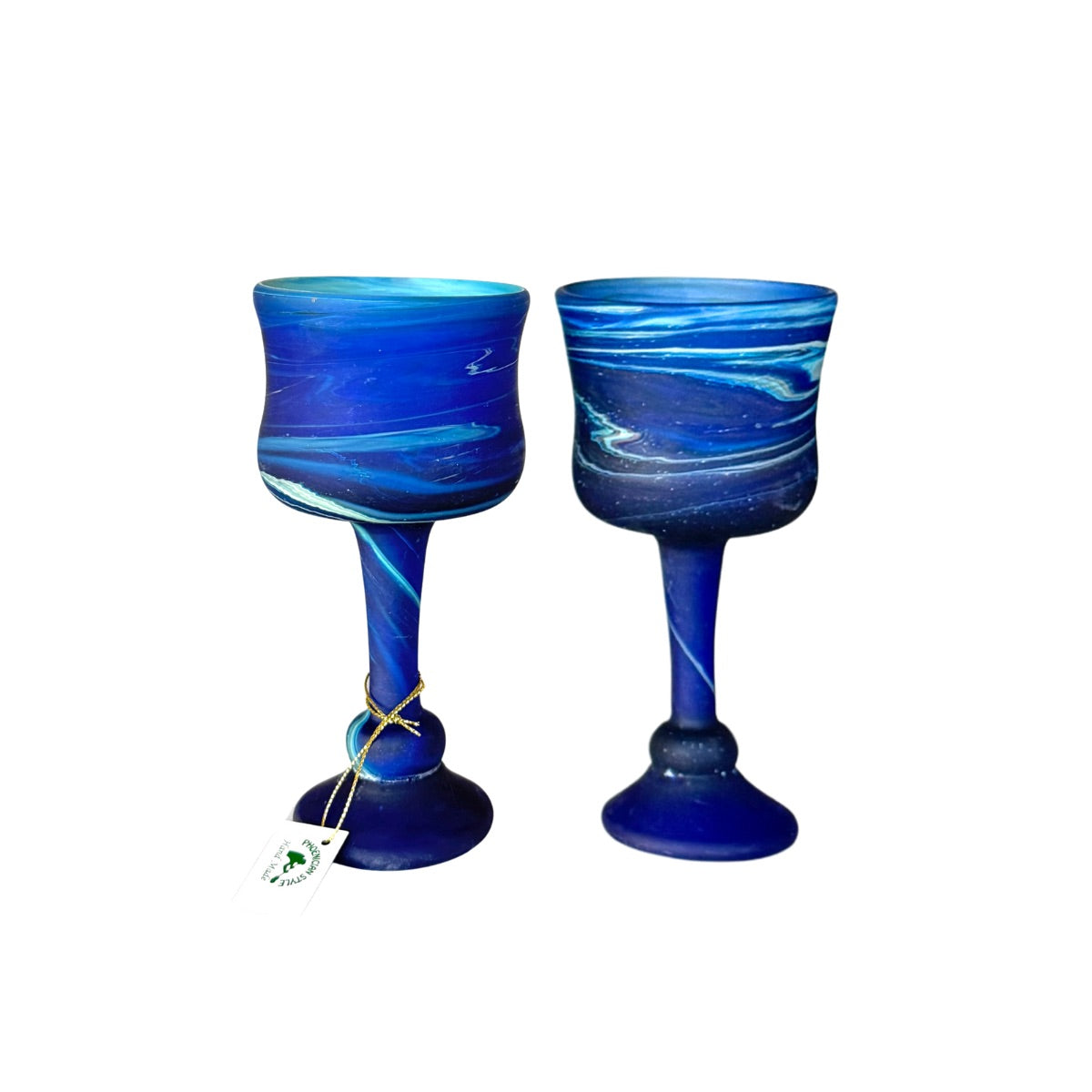 Phoenician Glass Goblets (Set of 2) - Blue Swirl