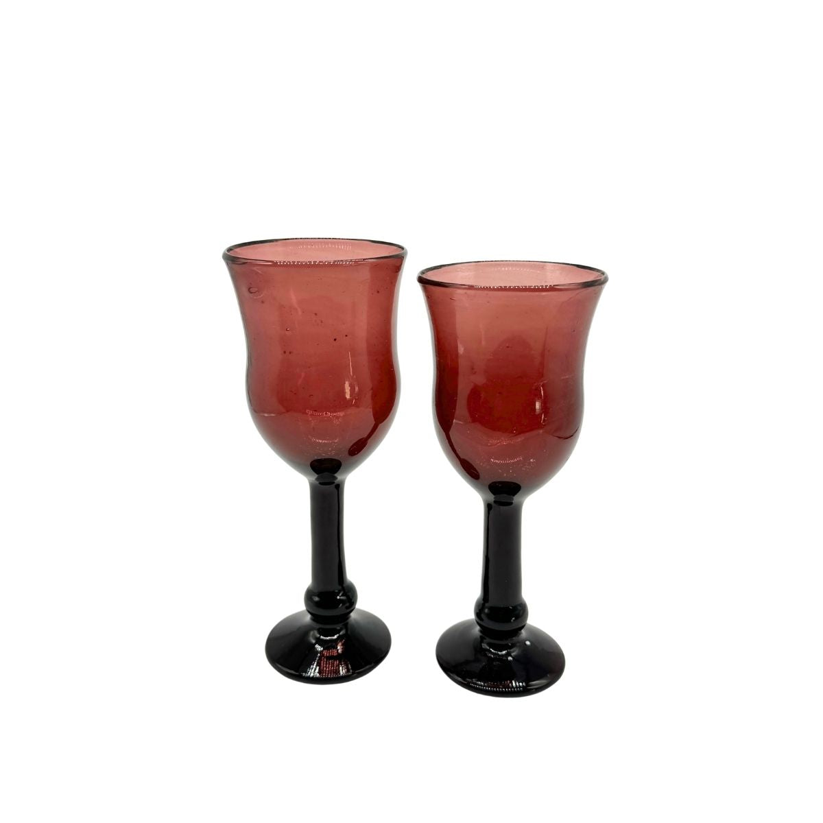 Hand-blown glassware from the artisans of Hebron Glass Studio. Each glass stands at approximately 5 inches tall.
