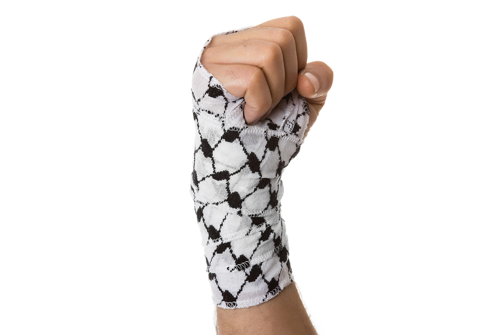 This bandage is made from the iconic Palestinian scarf, the keffiyeh, a symbol of the Palestinian cause. It is made at the Hirbawi Keffiyeh factory, the last remaining factory in Palestine that makes the scarf. This bandage can be used to heal physical wounds, but it is also a symbolic product that draws attention to the immense mental scars caused by the occupation.
