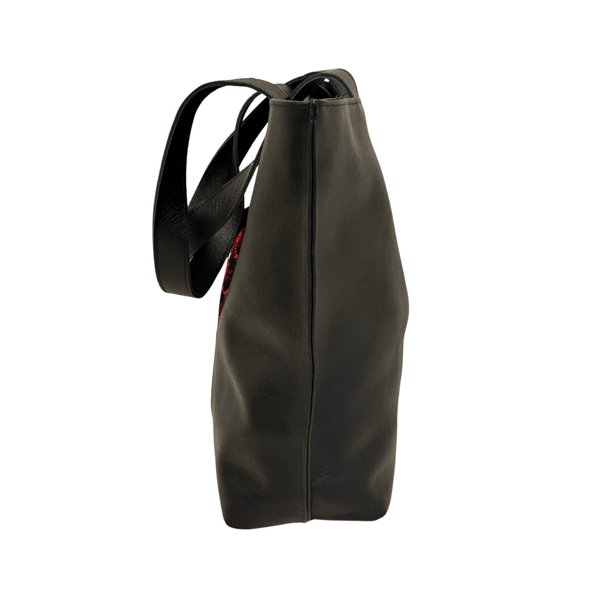 Leather Tote Bag with Embroidery - Black