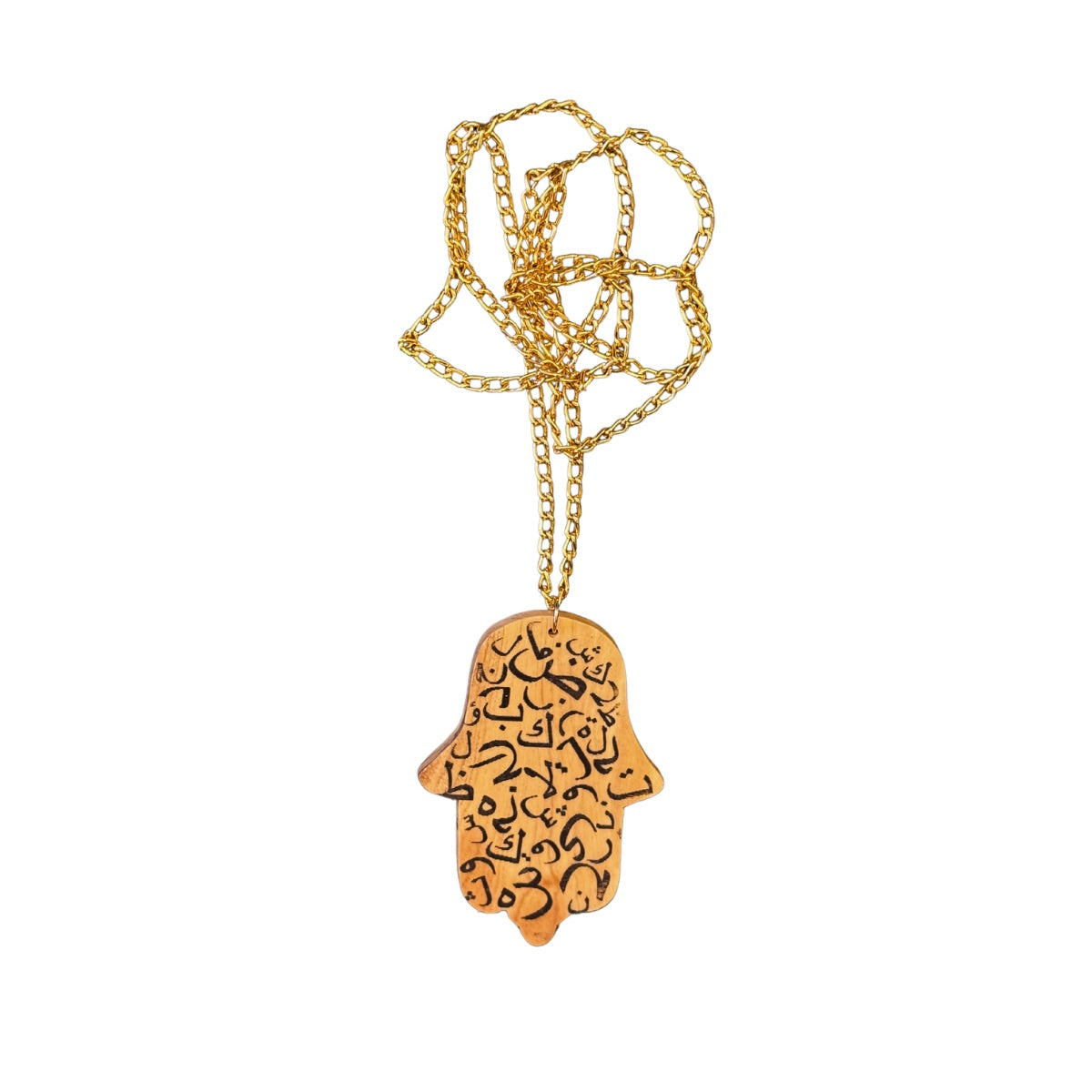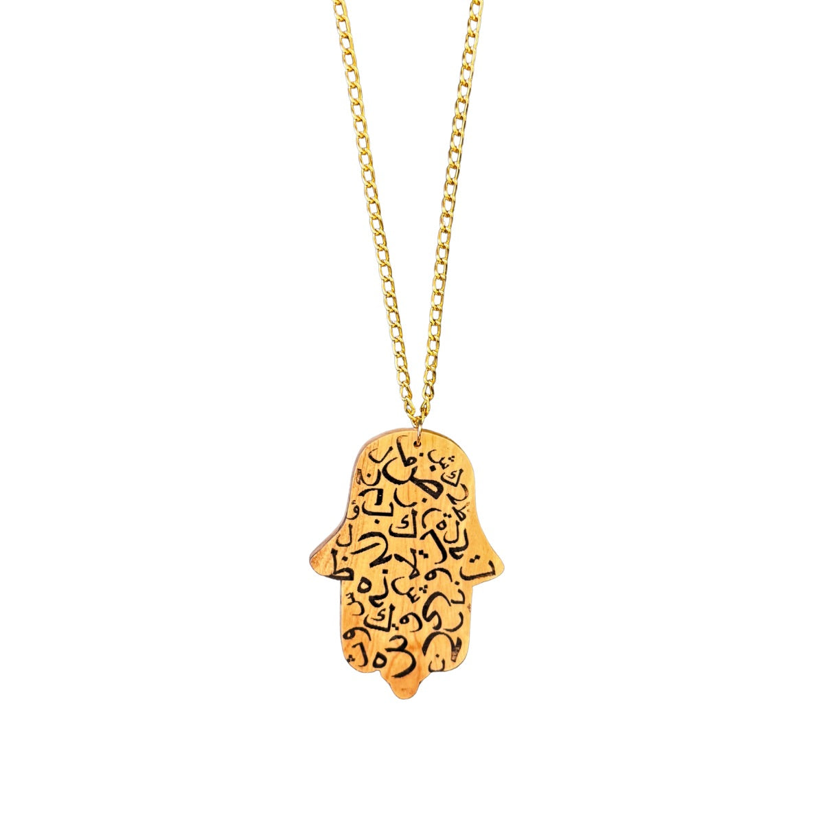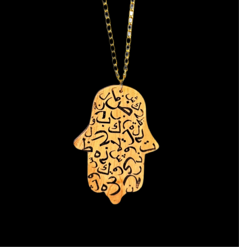 Olive Wood Pendant - Hamsa w/Arabic, Large (2.5")