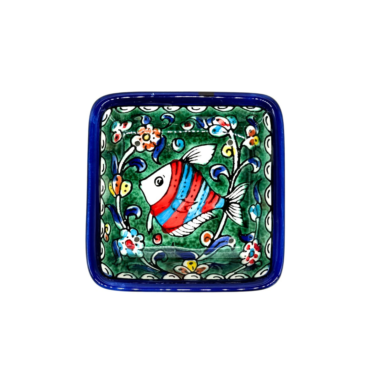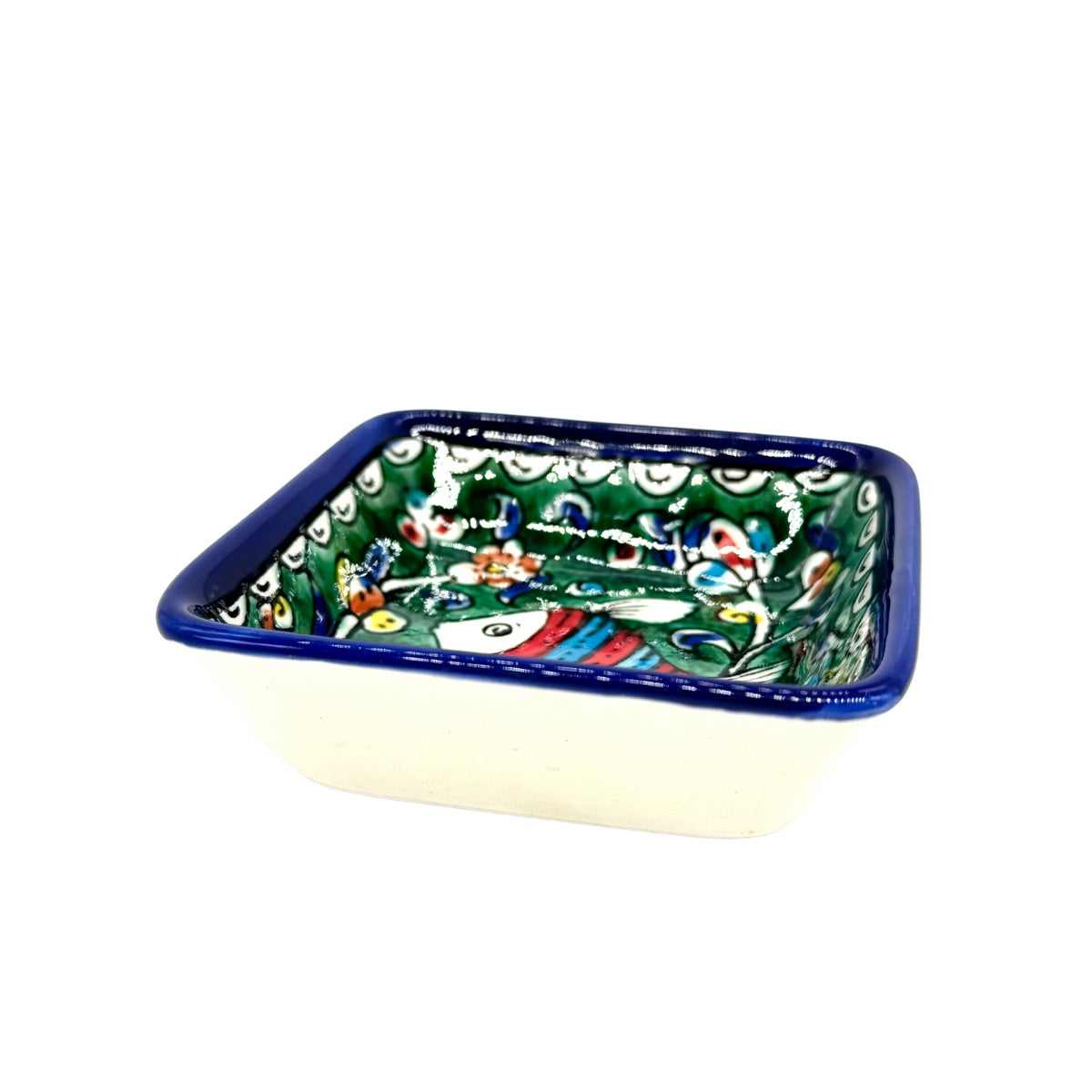 Soap dish with holes for water to drain from Hebron, Palestine. 3.75" square.
